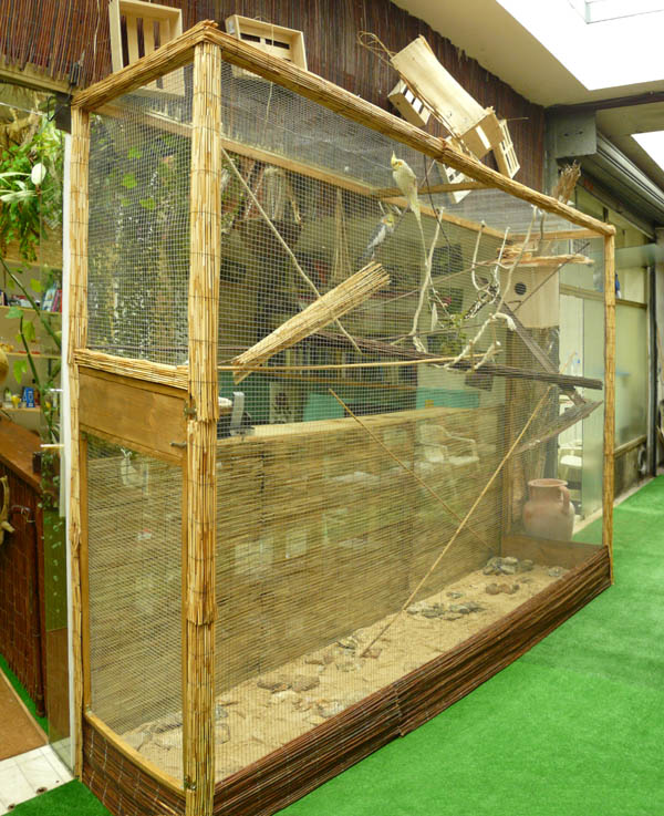 Coût de la volière : 300€ environ TTC avec le décor intérieur et quelques petites quincailleries que j’avais déjà . J’aurais mis en tout une petite semaine de boulot, soit environ trente heures pour tout réaliser.