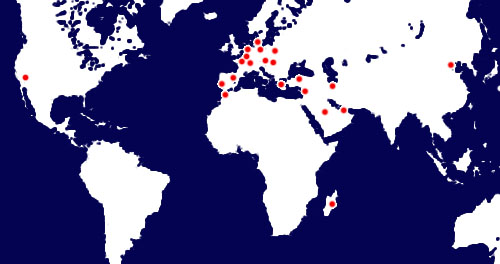 France - Belgique - Suisse - Allemagne - Danemark - Pays-Bas - Pologne - Hongrie - Espagne - Autriche - Portugal - Grèce - Maroc - Turquie - Iran - Liban - Dubaï - Emirats Arabes Unis - Arabie Saoudite - Madagascar - Chine - Etats-unis