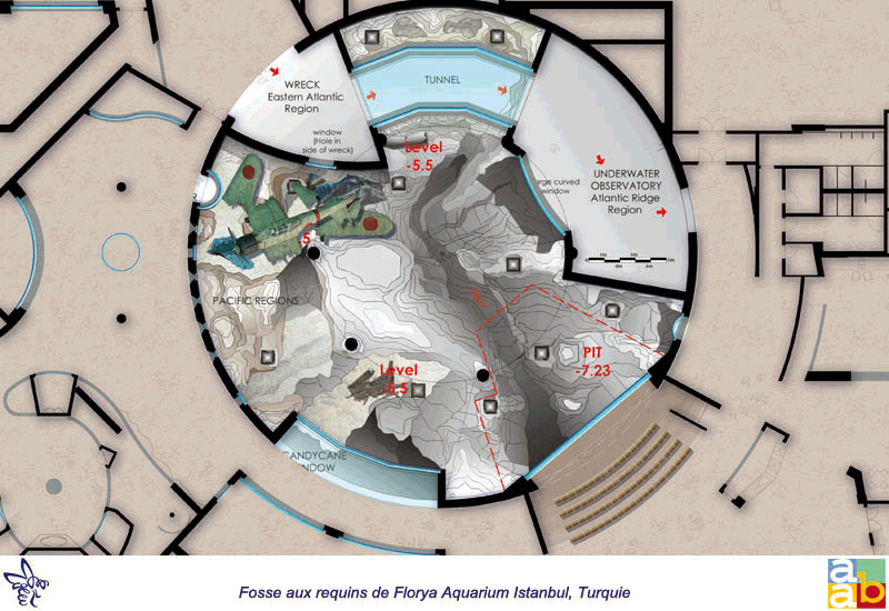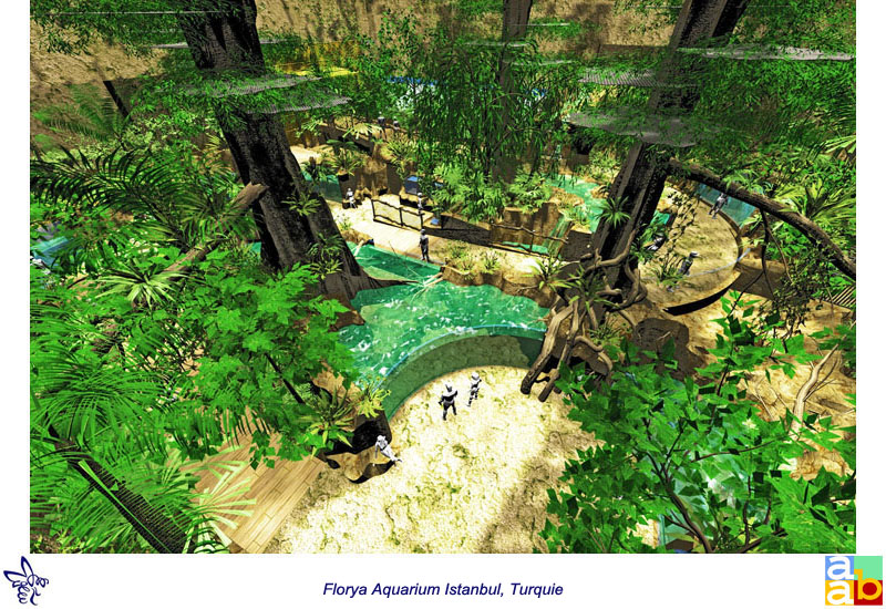 Dossier d'exécution des travaux. Décors et plantations de la serre tropicale amazonienne.Conception de la plus fosse aux requins d'après le cahier des charges animalier.