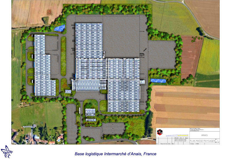 Volet pour l'ouverture à l'urbanisation d'un secteur naturel en vue de l'extension et de la réhabilitation du site d'Intermarché. Analyse de l'intégration du site dans le paysage, replantation de haies bocagères et de noues, restructuration des sols. Avant-projet paysager, dossier de consultation des entreprises et maîtrise d'oeuvre d'exécution.