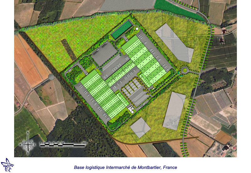 Volet pour l'ouverture à l'urbanisation d'un secteur naturel en vue de l'extension et de la réhabilitation du site d'Intermarché. Analyse de l'intégration du site dans le paysage, replantation de haies bocagères et de noues, restructuration des sols. Avant-projet paysager, dossier de consultation des entreprises et maîtrise d'oeuvre d'exécution.
