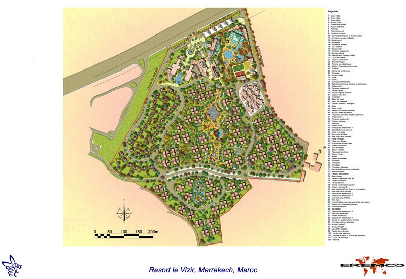 Maîtrise d'oeuvre conception, APS. Conception de l'aménagement d'un complexe hôtelier et de loisirs luxuriant comprenant piscines, mini golf, activités ludiques, balnéaires, sportives, culturelles et commerçantes. Jardins de découvertes, potager, jeux d'eau, rivières, bassins, fontaines, ponts et passerelles, tentes et pergolas...