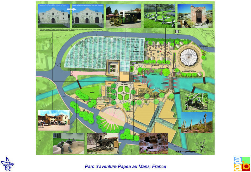 Conception APS de l'entrée du parc sur le thème du Mexique et du Far-West.