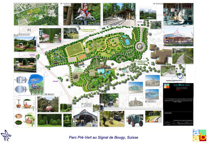 Rénovation du parc de loisir sur un piton rocheux dominant le lac Léman. Le projet devait s'inscrire dans le parc de loisir existant sur une surface d'environ 3ha en utilisant les emprise de la plaine engazonné (football, volley ball, basket ball, pétanque...) ainsi que l'emprise de la ferme et des paturages au sud ouest du domaine. Le projet consistait à intégrer six manèges ("rivière enchantée", "promenade en tracteur", "carrousel", "chevaux galopant", "monorail" et "espace waterplay") aux attractions existantes, tout en proposant une ambiance de parc et jardin plus soutenu en améliorant notamment la qualitée paysagère et botanique du lieu.