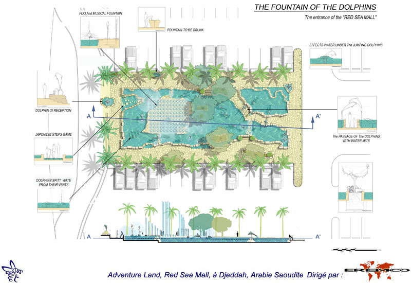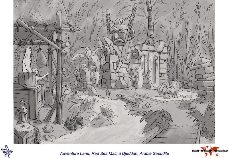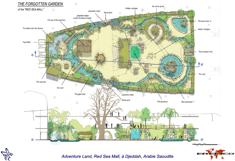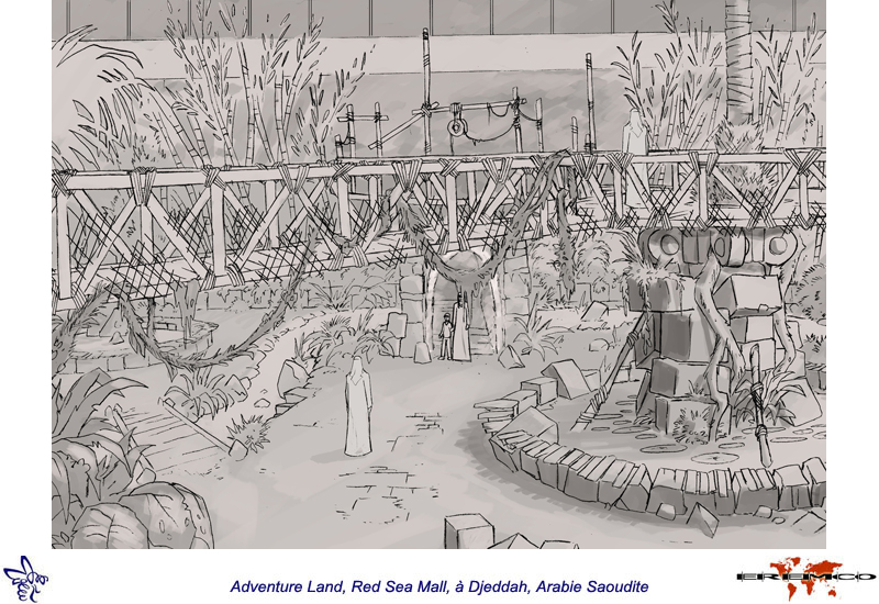 Conception d'un jardin d'aventure à destination des enfants et de la place d'accueil d'un centre commercial à Djeddah.